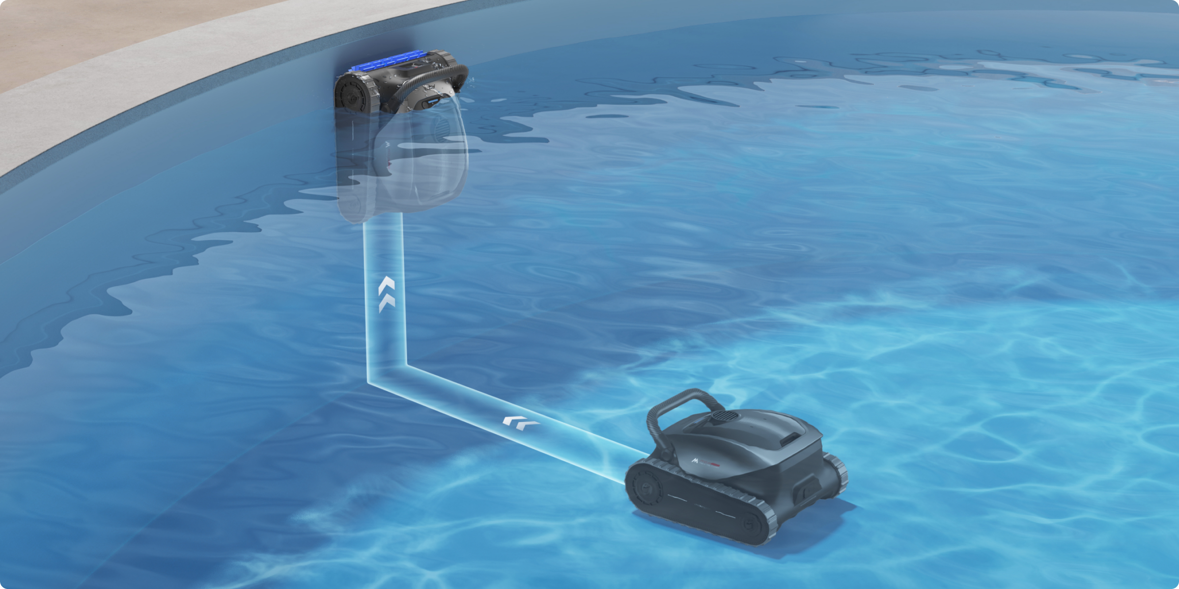 PoolSense 2.0, the intelligence behind PoolNavi™, integrates AI with six ultra-precise sensors to navigate pools with real-time accuracy. It seamlessly switches among three professional cleaning patterns—S, Star, and N—for complete pool coverage.