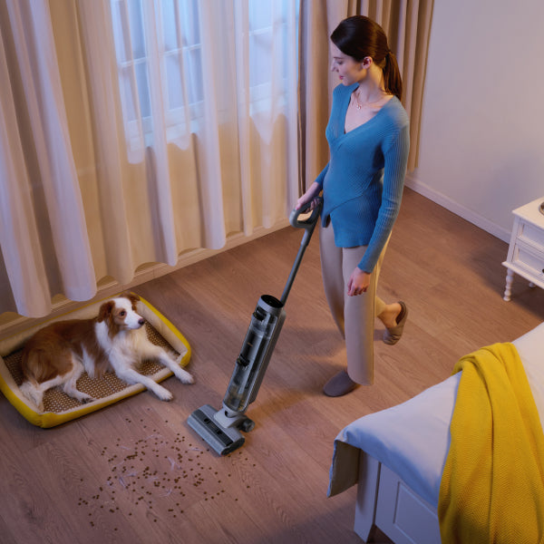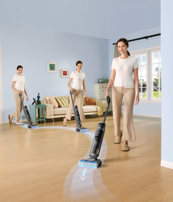 K20 Turbo enables simultaneous vacuuming and mopping without the restriction of cords. It adeptly tackles diverse messes, both wet and dry, on wooden floors and tile floors, streamlining the cleaning process for enhanced efficiency.