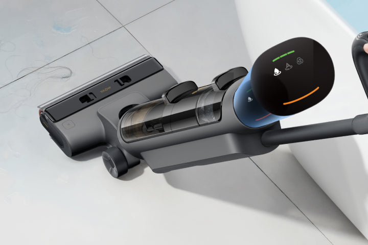 The vacuum's sleek LED display informs you of the cleaning status, battery level, and other essential details. Conveniently monitor the working status, cleaning controls, and battery level, and receive feature malfunction warnings.