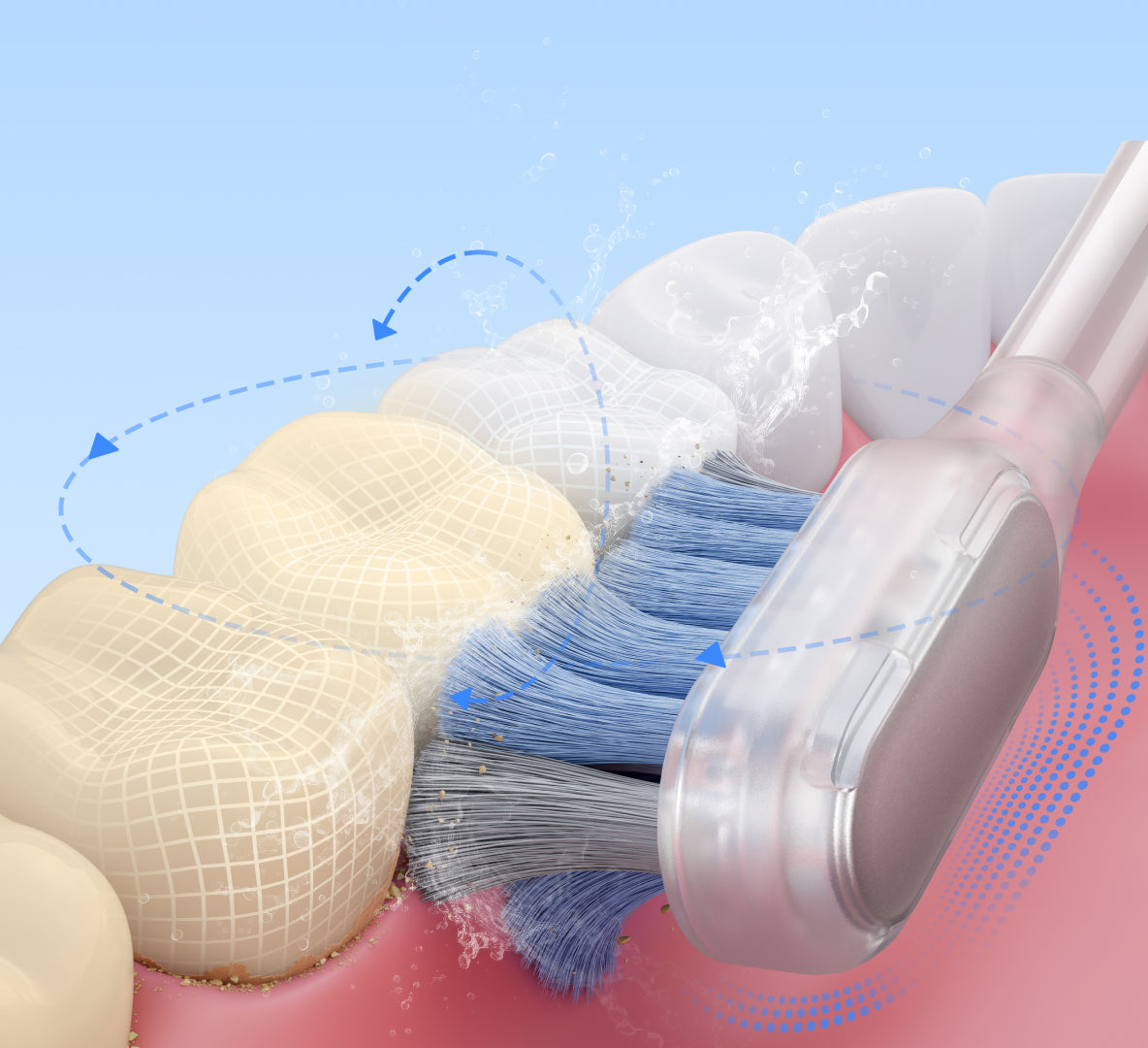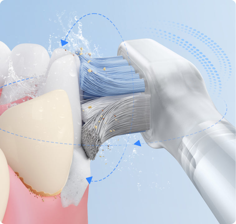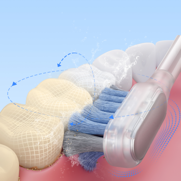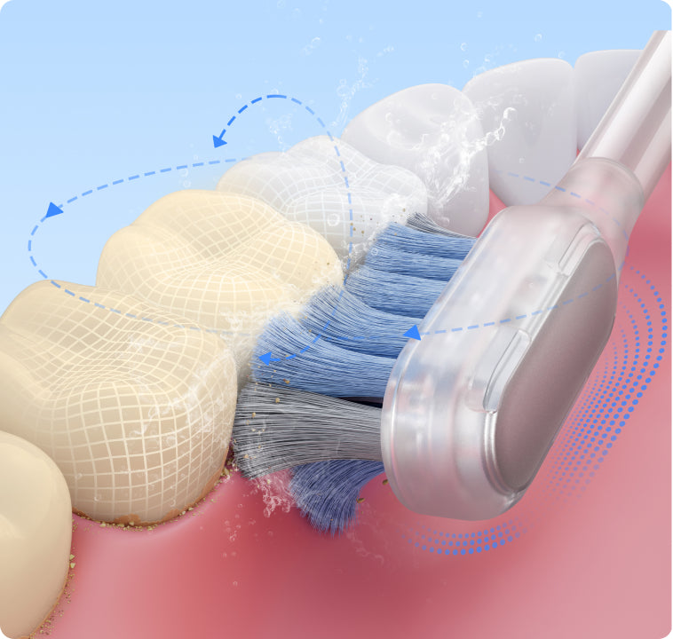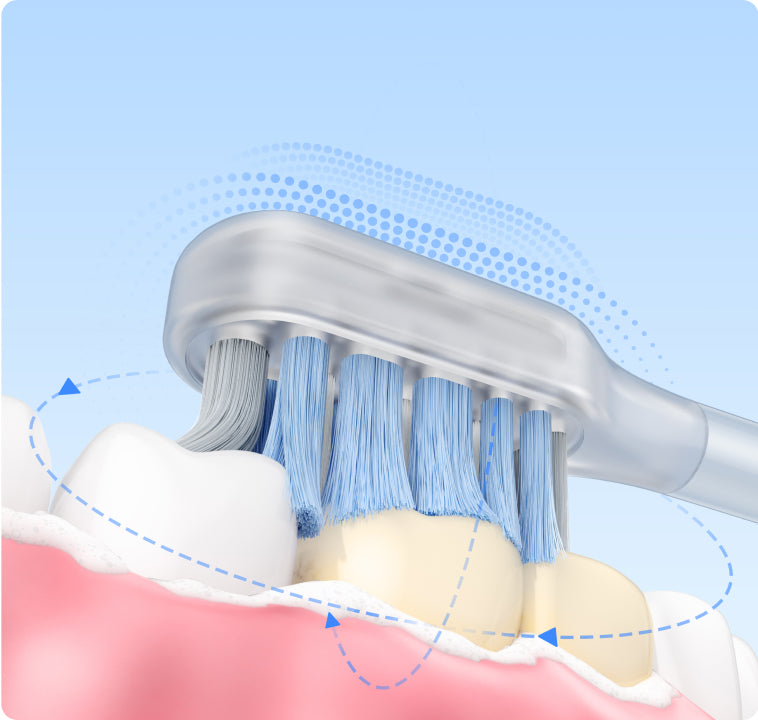 Soft bristles with 95% rounded tips dive gently into gaps and along the gum line, offering an efficient yet delicate touch to your teeth and gums.