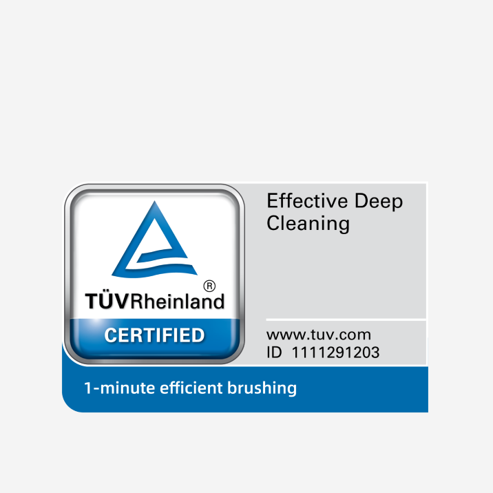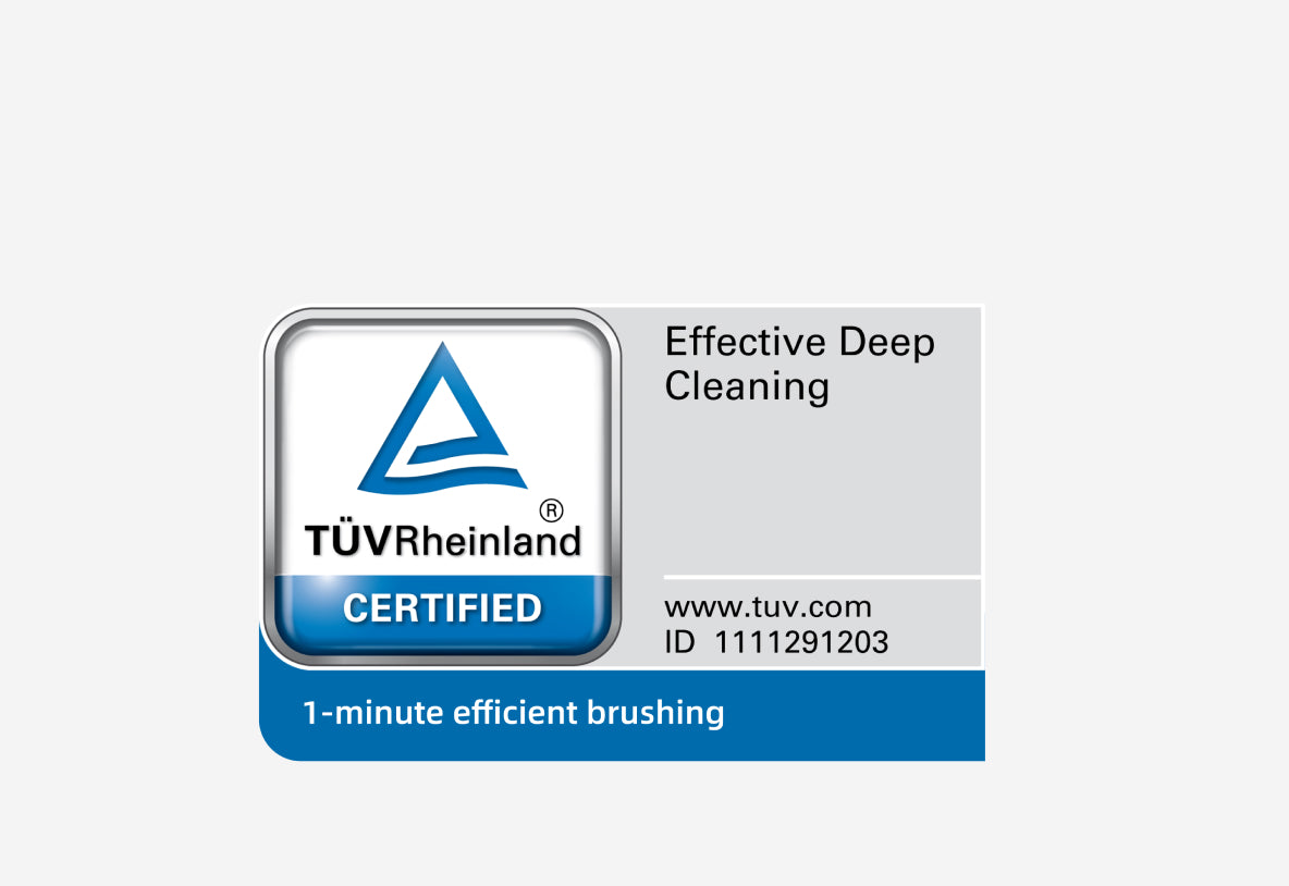 *One minute: Certified by reputable organizations like TÜV Rheinland for the one-minute brushing method. The data comes from third party laboratory. Actual performance may vary depending on usage.