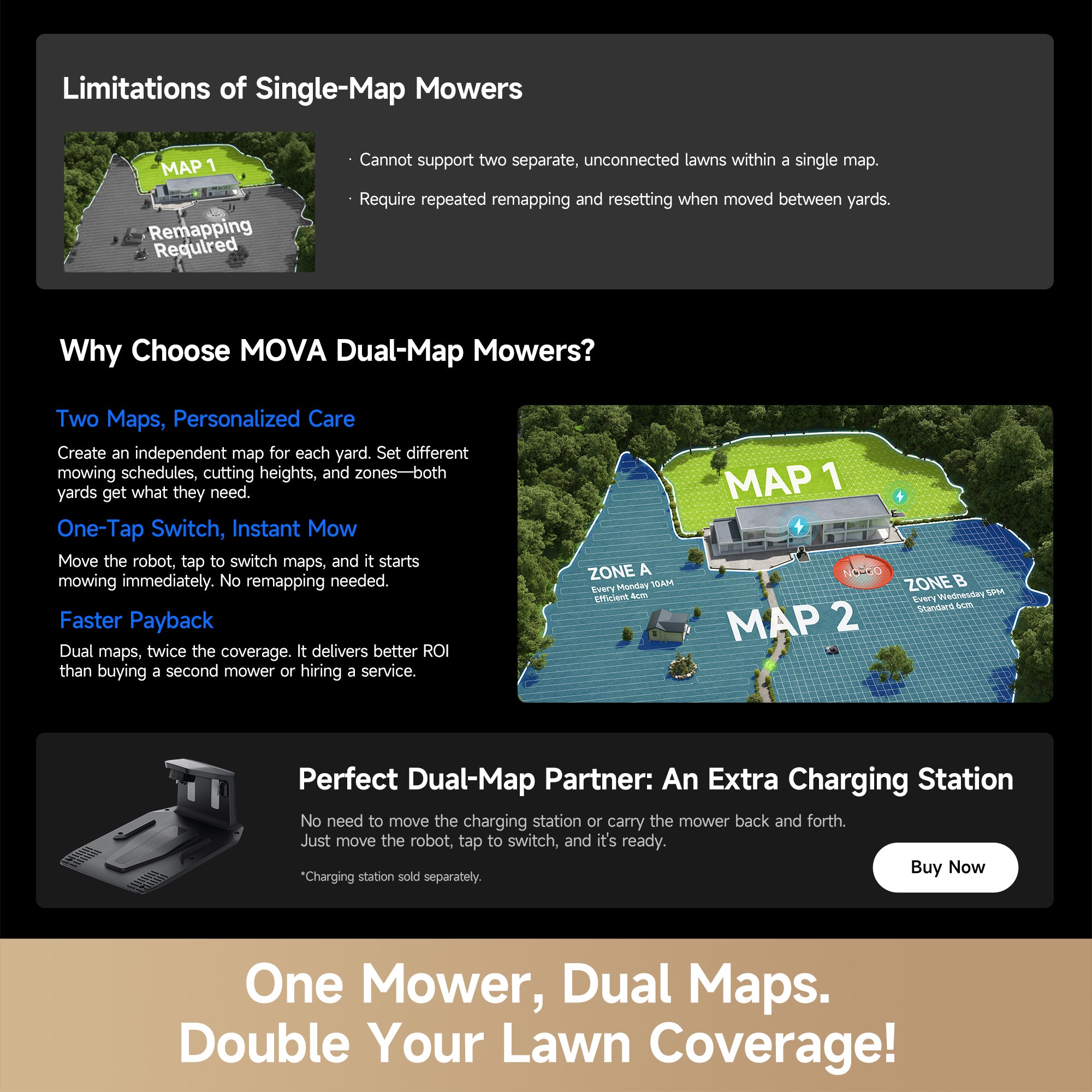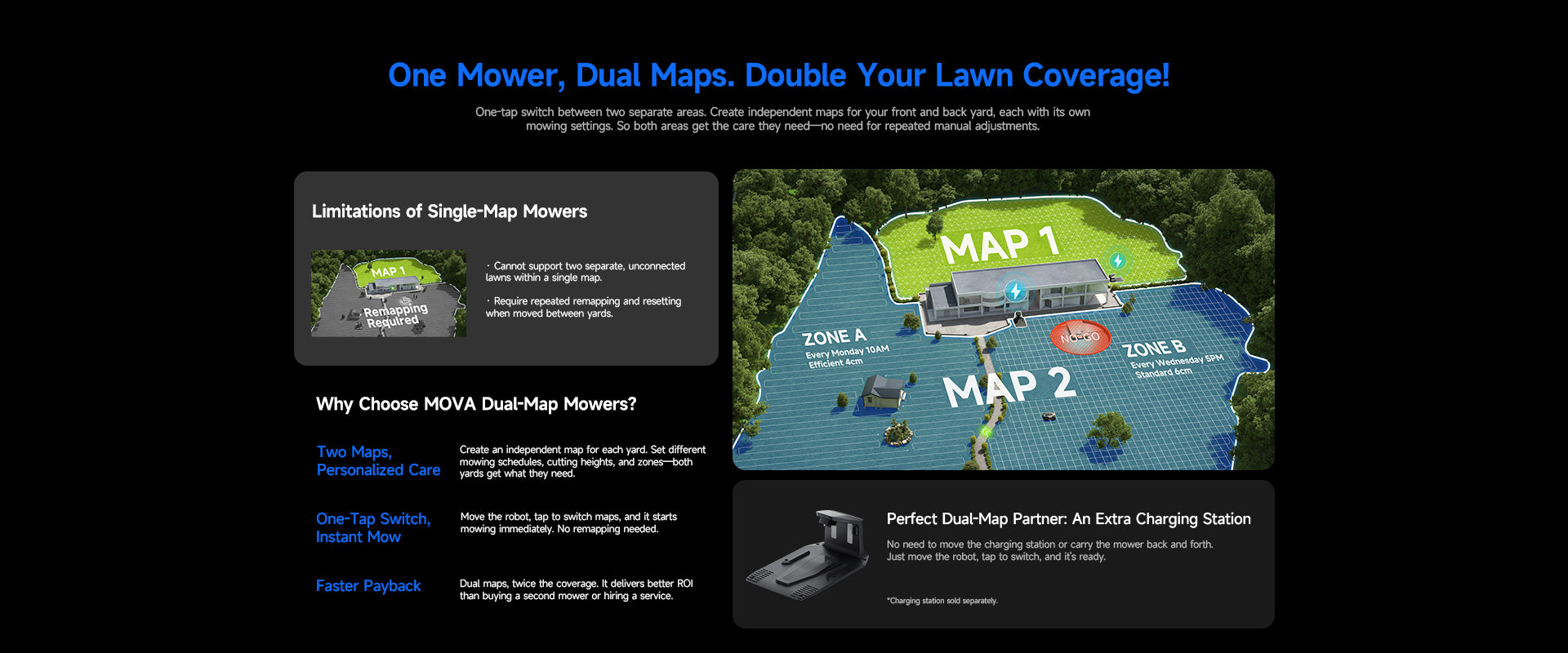 *Dual-map functionality enhances efficiency when used with additional charging stations. Compatible charging stations and adapters are available as optional accessories.