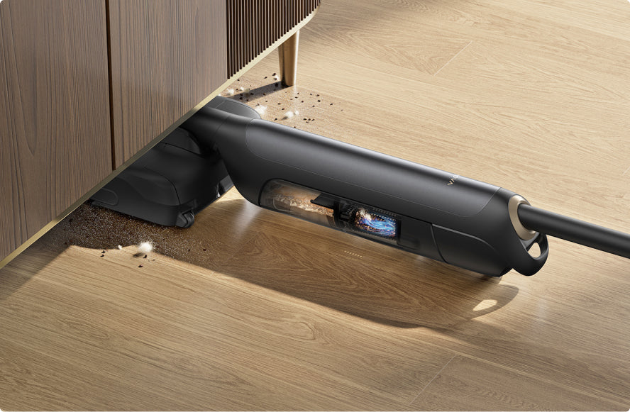 Easily accesses low spaces, fitting into gaps as narrow as 14cm*, ensuring complete dust removal under furniture and hard-to-reach areas.