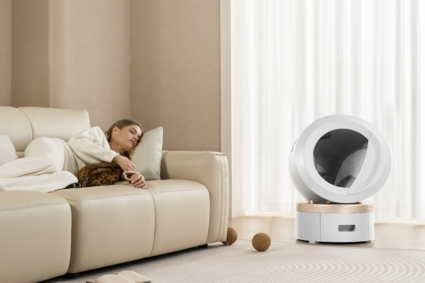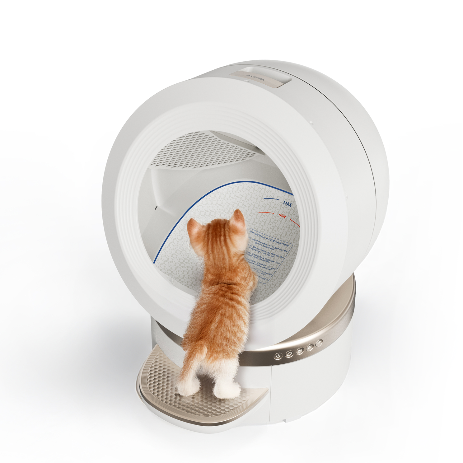 Creates an all-around health ecosystem for your cat. Defecation data is analyzed by intelligent algorithms to assess health and auto-adjust feeding plans on the MOVA pet feeder PF20 Pro.