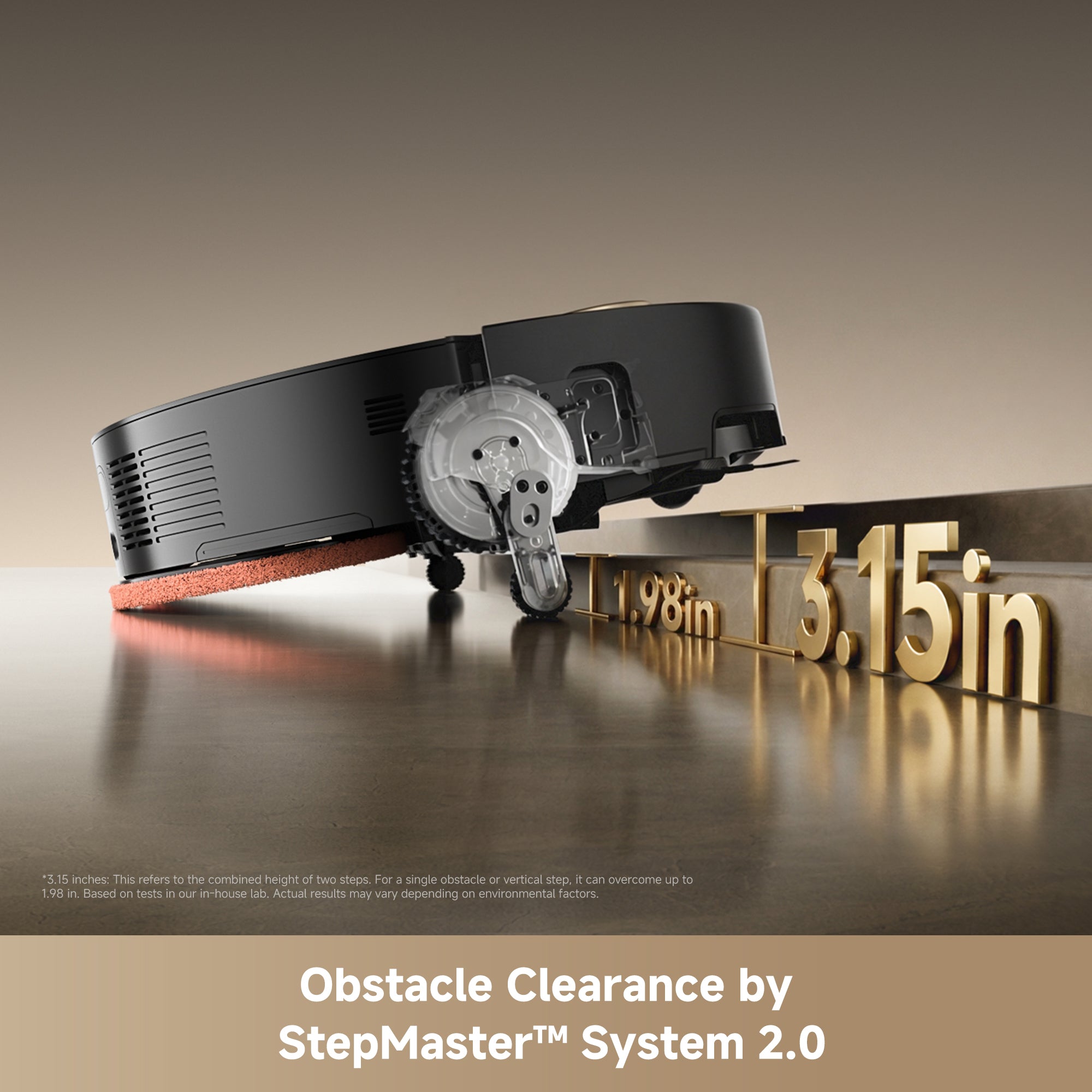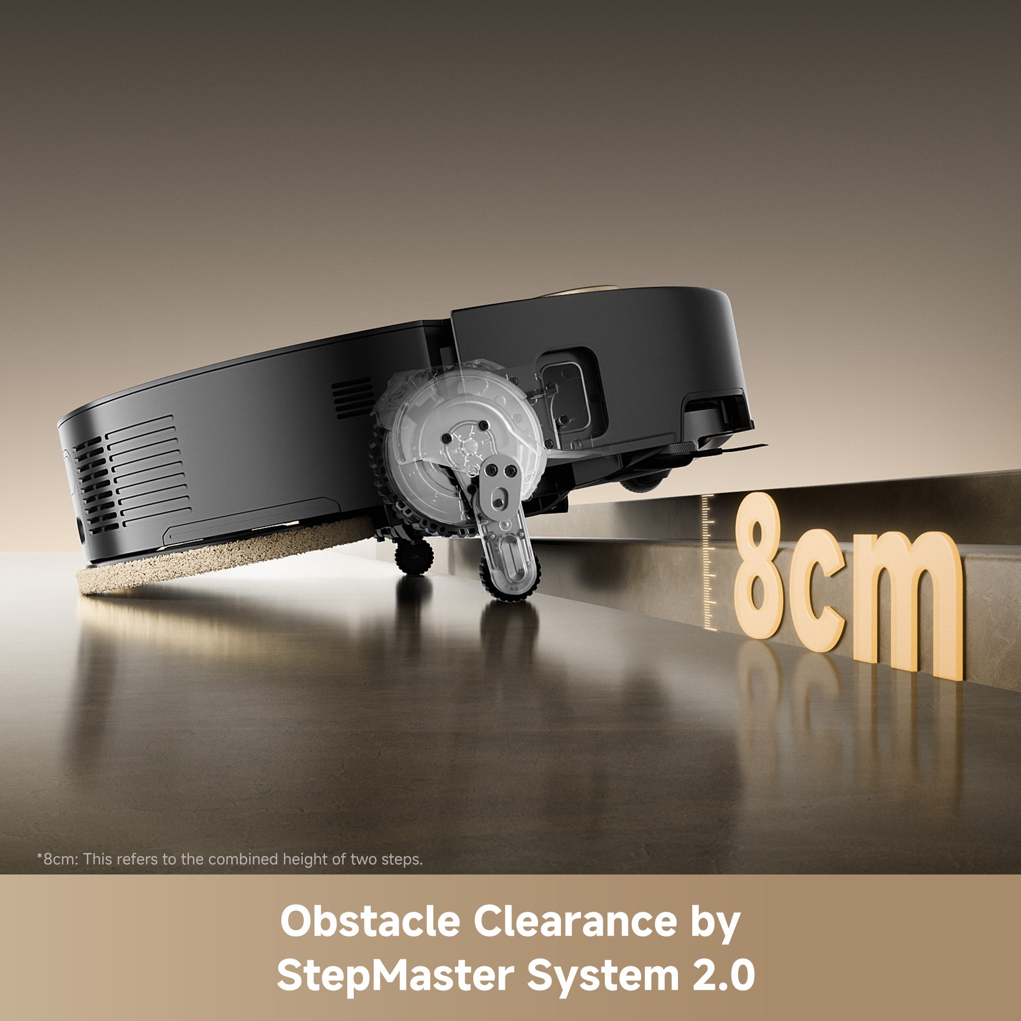 *8cm: This refers to the combined height of two steps. For a single obstacle or vertical step, it can overcome up to 5cm. Based on tests in our in-house lab. Actual results may vary depending on environmental factors.