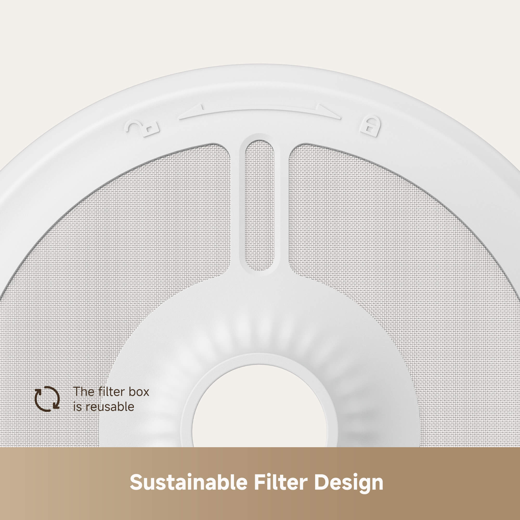 Minimize plastic waste through our sustainable design: the filter box is reusable, allowing you to replace the filter cartridge separately.