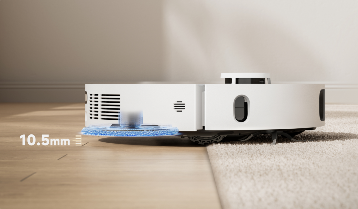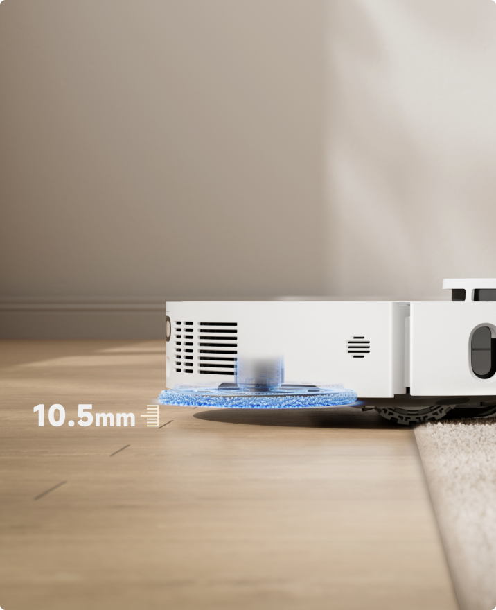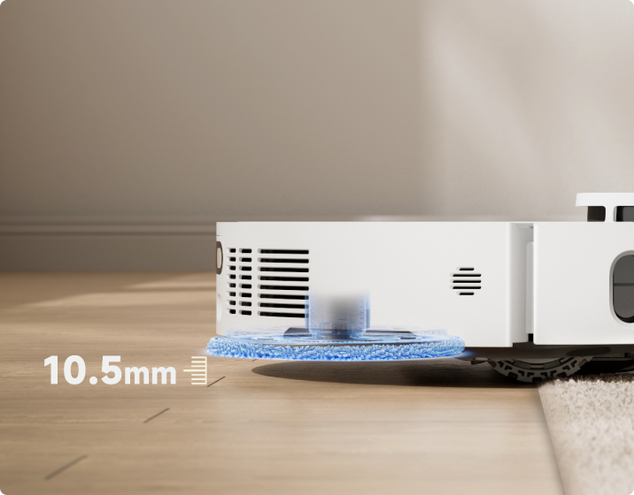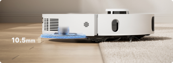 - *10.5mm: The height difference of the robot vacuum is 10.5mm before and after mop lifting. For carpets with piles longer than 3mm, we suggest you set the robot vacuum to avoid medium and high-pile carpets via the cleaning app and protect your carpets from getting wet.